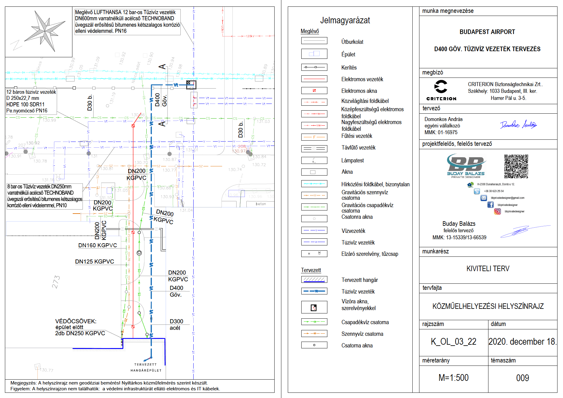 D400-as tűzivíz vezeték tervezése kiviteli terv szinten