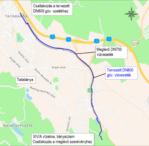 Irodánk készítette Tatabánya területén lévő DN800-as átmérőjű regionális gerincvezeték terveit 10km hosszúságban.