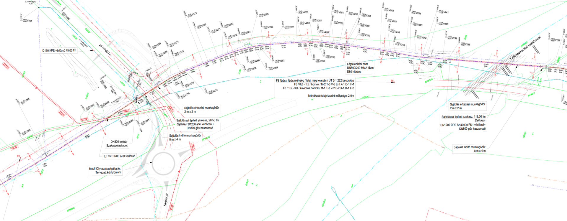 Irodánk készítette az út alatti átvezetés irányított furással történő tervét.